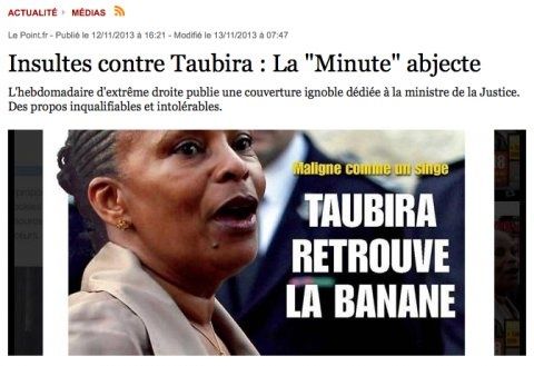 Le Point n’a évidemment pas laissé passer l’occasion de s’interroger lui aussi sur les causes profondes du racisme, en oubliant bien sûr de questionner ses propres responsabilités dans la banalisation de certaines « idées » et dans la stigmatisation des « minorités ». Après la publication, le 13 novembre, du numéro de Minute dont la « une » méprisable à propos de Christiane Taubira ne mérite même pas d’être reproduite ici, c’en est était vraiment trop pour Le Point :