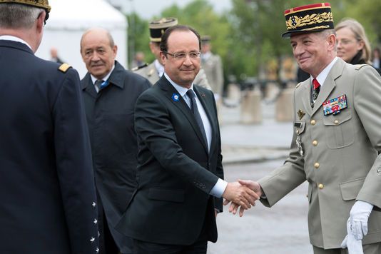 Cherchant à rehausser sa popularité en se présentant en chef de guerre, il a en déclaré que « la France a pris ses responsabilités lors de graves crises internationales : le Mali, la Syrie, la Centrafrique. » Il a aiguisé son discours au moyen d’une rhétorique chauvine : « La France est toujours au premier rang, et j’en suis fier, au service de la paix. C’est son honneur. C’est son devoir. C’est pourquoi nous sommes intervenus au Mali, pour lutter contre le terrorisme. Que nous agissons pour éviter l’utilisation des armes chimiques en Syrie. Que nous sommes présents en Centrafrique pour sauver des vies humaines. »